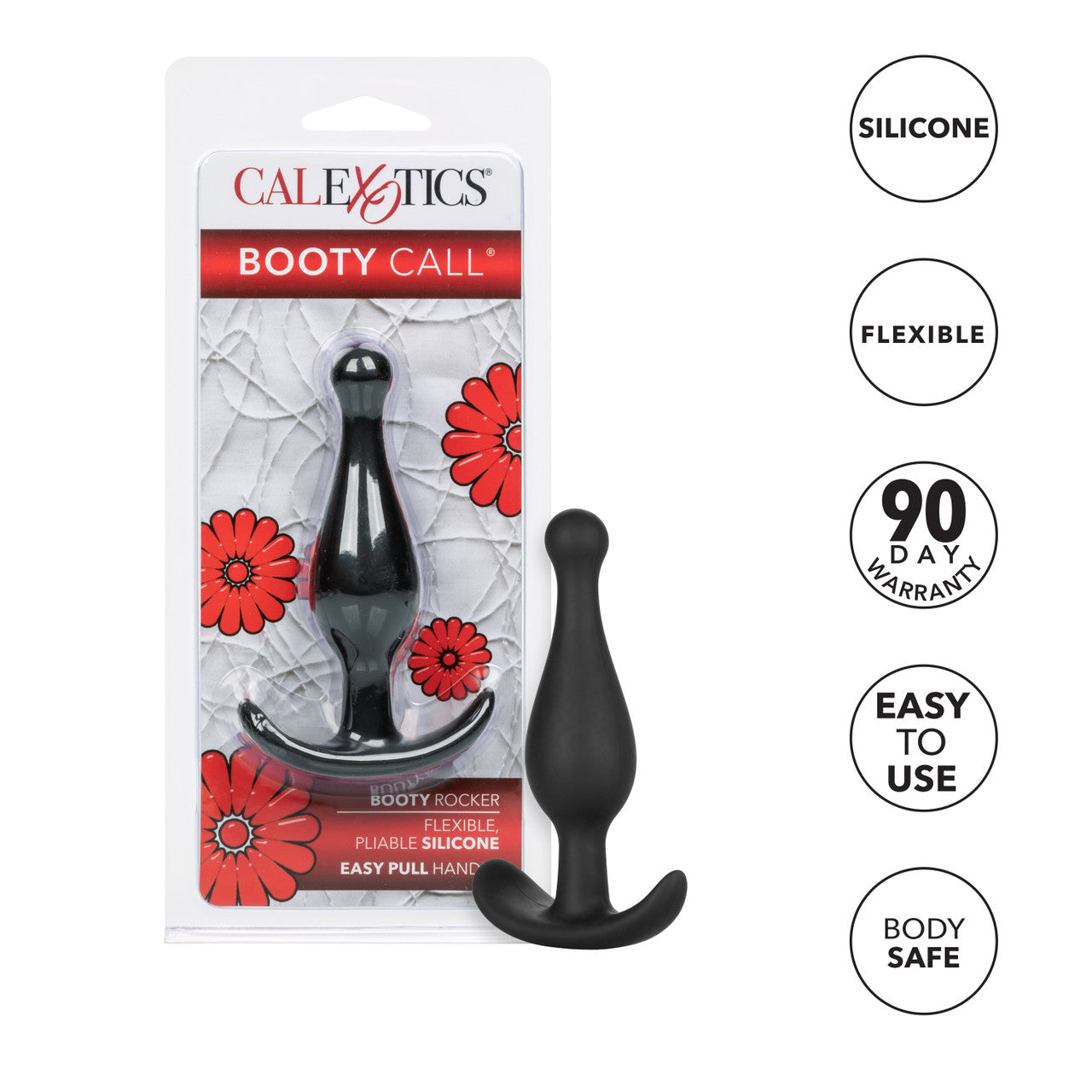 Booty Call Booty Rocker Black from California Exotic Novelties. Rock your way to stimulation and pleasure in the most sensual, orgasmic way with the Booty Call Booty Rocker, an innovative prostate stimulator which features a unique design. The flexible and pliable Silicone material offers maximum comfort, the user friendly shape promises easy application, and the unique rocking base brings your foreplay to a whole new level of sensory satisfaction. The probe allows you to have full control of your movement and you can take the lead with your physical stimulation, with every touch and every arousal. Made with a pure Silicone, the entire probeis safe for every skin type and can be used for even the most intimate parts of the body, while the pliable probe head eliminates discomfort so you can focus on really enjoying yourself, either on your own or with a loved one. Additionally, the easy pull handle makes it extremely easy to retrieve. So if you are looking for a user friendly product that is both safe and simple to handle, even for less experienced users. The sexy and sensual probe comes highly recommended. It comes 4.75 inches in length and 1 inch in width, is completely light weight for convenient travel, and is easy to clean after every single use. To make the most of your prostate play time, we also recommend using a compatible a water based personal lubricant. The design is beautifully discreet and can be stored anywhere in the home. Uniquely shaped, flexible and pliable butt plug. Easy pull handle makes retrieval a snap. Safe and pure for body and pleasure. Made using phthalate free, non-toxic materials Silicone. Anal sex toy measures 4.75 inches long by 1 inch wide. Bulk weight 1.3 ounces. Water based personal lubricant is recommended. Always clean before and after use with an antibacterial soap or a sex toy cleaner. Anal plug, butt plug, non-vibrating Anal Sex Toy, P-Spot, Prostate M assage. Always clean before and after use. Booty Call Booty Rocker is a registered trademark for California Exotic Novelties. Sex toys and sexual wellness. Categories: Anal Toys, Prostate Massagers, P-Spot Stimulators, Small, Medium Butt Plugs, T-Plugs, Sex Toys for Men, Women, Couples. 2023.