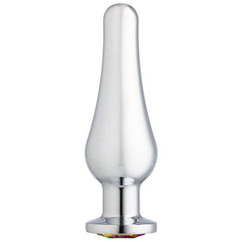 Cloud 9 Gems Silver Chrome Tall Anal Plug Medium. New Gems Silver Chromed Anal Plug Tall Tapered Design. Plug with anal jewelry decorated with a stunning rainbow multicolored gem. Hypoallergenic, nonporous, odorless and body safe. Tapered for intense pleasure. Great for beginners. Anal Jewelry decorated with a stunning rainbow multicolor gem. Silver chromed wearable plug featuring a jeweled beauty for your booty. Cloud 9 Jeweled Gems.
