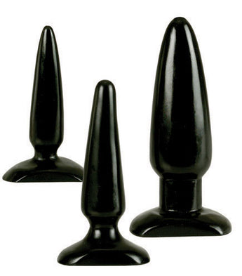 Colt Anal Trainer Kit from California Exotic Novelties. Failing to prepare is preparing to fail. Always be ready for action by using the Colt Anal Trainer Kit. Three graduated sizes of anal plugs, from 1 inch wide to 1.5 inches wide will help you to be ready to take a Colt sized man. Each Butt Plug is specifically designed for stretching with pliable yet firm high quality phthalate free PVC. Choose the right size for you to get started in your regimen, and slowly get familiar with the exhilarating sensation of fulfilling anal play. So if you want to expand your horizons, the Colt Anal Trainer Kit offers just what will need to start the fun and excitement. This kit is the best warm up for Anal penetration. With a design that is entirely created with your needs in mind, you will get exactly the sensation you want and pleasure you crave with the Colt Anal Trainer Kit. So get ready, get set for the most satisfying anal experience around. Do not forget the water based personal lubricant, as it will be essential for a smooth ride all the way through. Before and after use, be sure to clean each Butt Plug with warm water and soap or toy cleaner, as well. 3 firm and pliable Butt Plugs provide incremental training stages from Small to Medium to Large. Small Butt Plug measures 4 inches long by .5 to 1.25 inches wide, Medium Butt Plug measures 5 inches long by .75 to 1.5 inches wide and Large Butt Plug measures 6 inches long by 1 to 2 inches wide. Bulk weight 12.6 ounces. Always clean before and after use. A water based personal lubricant is recommended. Colt Anal Trainer Kit is a registered trademark for California Exotic Novelties. Sex Toys and sexual wellness. Categories: Anal Toys, Prostate Massagers, P-Spot Stimulators, Sensual Kits, Anal Trainer Kits, T-Plugs. 2024.