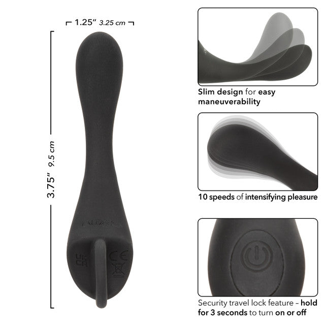 The Dr. Joel Kaplan® Prostate Locator is as convenient as it is thrilling. With a security travel lock for peace of mind and a state-of-the-art memory chip that resumes on the last speed used, it allows for a personalized experience every time. It’s USB rechargeable, and a complete charge takes only 1.5 hours, offering 50 minutes of play on high speed and 60 minutes on low. Dive deep into your exploration and let this probe guide you to new heights of ecstasy.