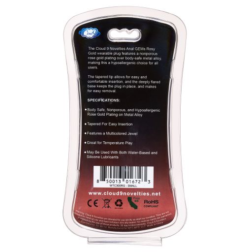 Features: a multicolor Jewel. Great for temperature play. May be used with both water based personal lubricants and Silicone Lubricants. Cloud 9 Novelties - Gems Rosy Anal Plug. Categories: Anal Toys, Small Butt Plugs, Medium Butt Plugs. Video. Restricted, Amazon Restricted. Video. 2023. .