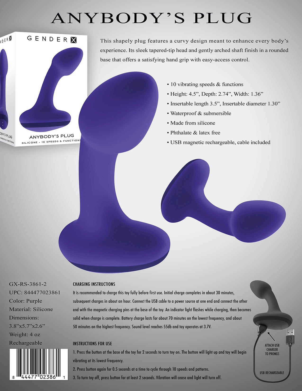 Gender X Anybody's Plug from Evolved Novelties. This shapely plug features a curvy design meant to enhance every body’s experience. Its sleek tapered tip head and gently arched shaft finish in a rounded base that offers a satisfying hand grip with easy access control.