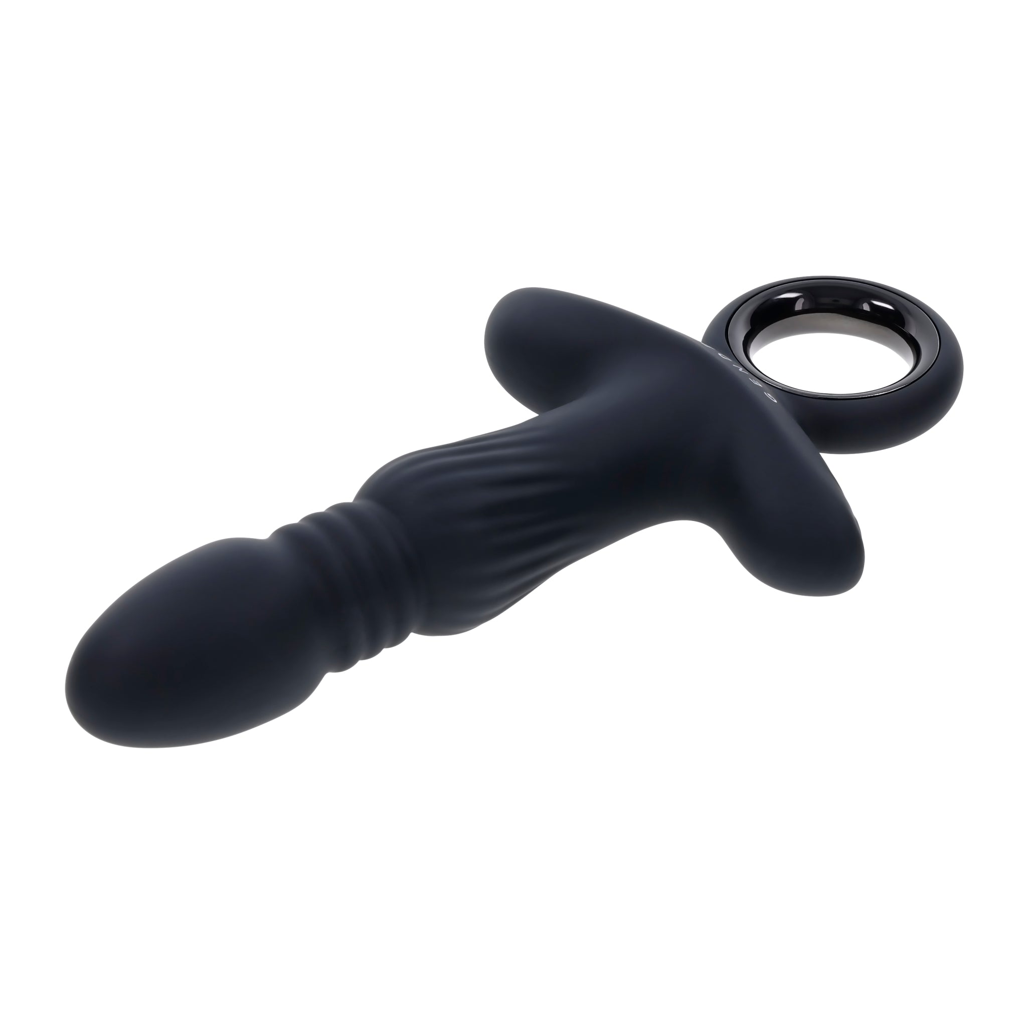 Gender X Slayer Black Toy from Evolved Novelties. This large robust thrusting Vibrator has a smooth egg shaped tapered tip that narrows to its thrusting accordion neck before swelling out again to a textured lower shaft. The wide base and ringed finger grip make navigation handy and agile. Description: 9 vibrating and thrusting speeds and patterns, 0.5 inch thrust. Made from body safe phthalate free and latex free Silicone and ABS Plastic. Height 7.86 inches, Depth 4.03 inches, Width 1.95 inches. Insertable length 5 inches, insertable diameter 1.31 inches. Waterproof and submersible. USB Magnetic Rechargeable, USB Cable included. Categories: Anal Toys, Prostate Massagers, P-Spot Stimulators, Vibrators, Sex Toys for Men, Eco-Friendly Sex Toys, Rechargeable Vibrators. 2024.