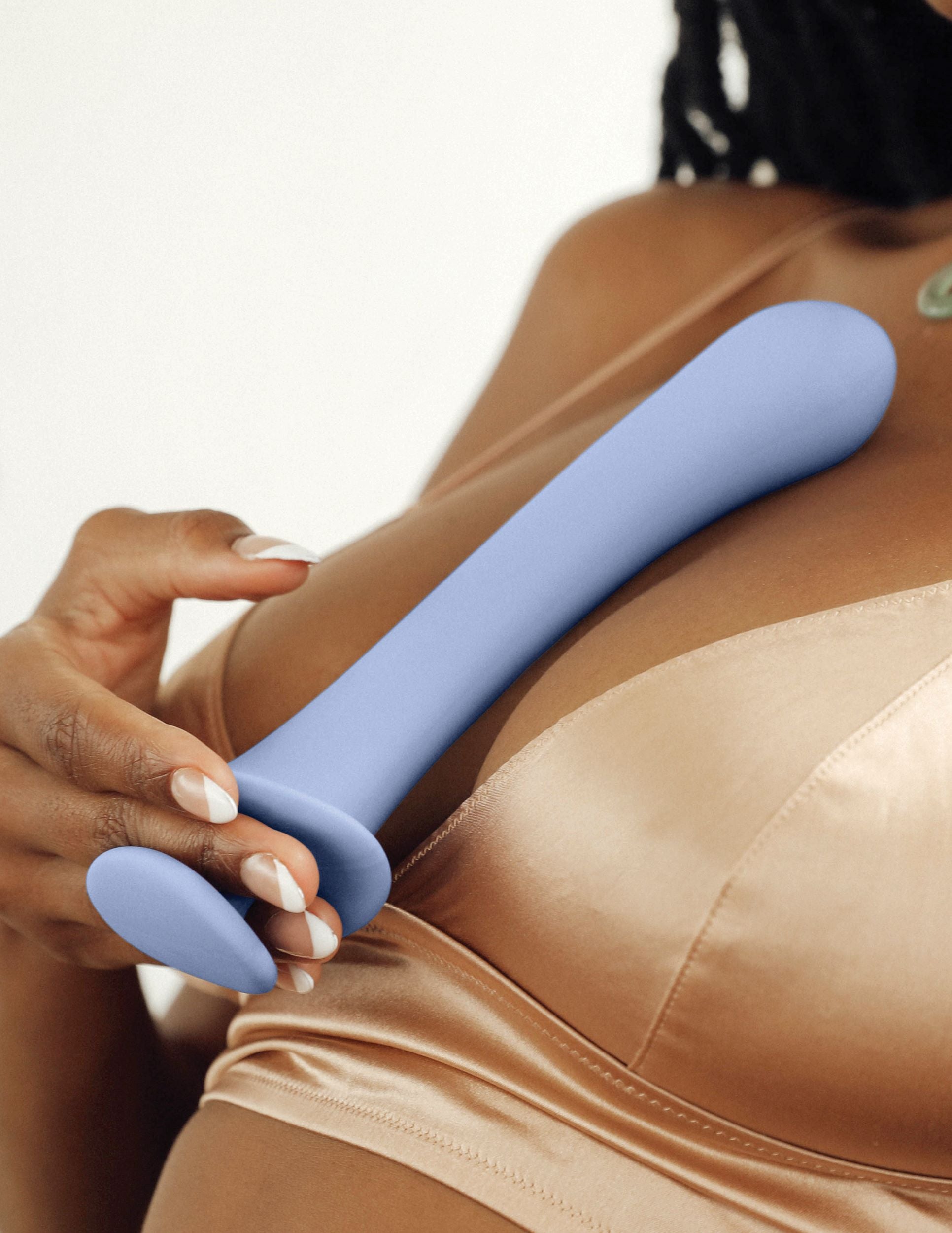 Features: an easy grip finger holder for easy maneuverability. Used by women, men and couples. Great for Vaginal, G-Spot and Anal stimulation. Waterproof; fully submersible and bath friendly. Includes cloth storage bag. Material 100% FDA cleared Silicone. Cleaning: spray JimmyJane Antibacterial Cleaner on the massager before use. Wipe with a clean, dry cloth and let it air dry. Repeat after use and store in a cool, dry place. Warnings: this product is intended for adult use only. Use water based lubricants only. Size: Length 7.7 inches. Width 1.6 inches. Depth 2.6 inches. Insertable Length 6.3 inches. Insertable Diameter 1.3 inches. Categories: Anal Toys, Prostate Massagers, P-Spot Stimulators, Dildos, Dongs, G-Spot Dildos. 2024.