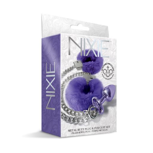 Nixie Metal Plug and Furry Cuff Set Purple Detachable and locking handcuffs feature a Jewel inlaid Metallic from Global Novelties. Great for role play and anal play. Smooth metal tapered shape. Made using Nickel free Aluminum Alloy. Comfortable plug stays in place. Easily warmed or cooled. Storage bag included. Butt Plug measures 2.75 inches in length by 1 inch in width. 9 inches chain. Made using body safe materials Nickel free Metal plug surface is smooth. Butt plug can be warmed in water. Not the microwave. Cuffs come with 2 release keys. Before starting any bondage play decide on a safe word. Stop! If play gets too much for couples. Chill by adding ice cubes. Always clean before and after use plus between partners. Categories: Naughty Role Play, Anal Toys, Small, Medium Butt Plugs, Sex Toys for Couples, Bondage Set. 2023.