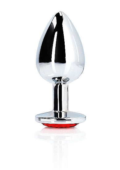 Ouch! Round Butt Plug Small Silver Ruby Red from Shots Toys. Fetish brand of the year. With its sleek smooth metal surface and jewel encrusted base, this range of butt plugs are more than average, they are a true gem. Wear it just for yourself or while having fun with your partner, the tapered tip allows easier insertion while the flared base ensures piece of mind while in use. Enter a whole new world of sensations and stimulation, the world of temperature play combined with the beauty and pleasure of our Ouch! Aluminum Butt Plugs with Jewels.