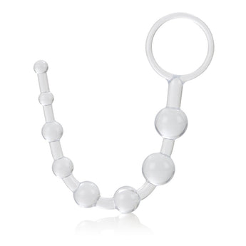 Shane's World Anal 101 Intro Beads Clear from California Exotic Novelties. If you are looking to get a taste of the gloriously pleasurable forbidden fruit that is Anal Play, the Shane’s World Anal 101 Intro Beads are the perfect place to start. Feel what it is like to get an anal massage of gently graduating intensity every time a Bead enters you and creates a rush of sensation. Lay back and let your partner explore unseen territory or explore your own body with these body safe Beads. These Beads are specially sized for Novice Anal Play and feature Graduated Beads that get just a little bit bigger with each one you insert. You are sure to love the experience of what feels like an orgasm worthy anal massage: each Bead opens and closes your Anus upon insertion and as it does, creates a rush of heavenly new sensation. Be adventurous and take in every one of them, or take it slow and start with just a few. Experiment with how these Beads feel best. Leave them inside you as you play and experience the heavenly feeling of fullness that allows for extra sensitivity. Or make Anal Play the focus and have your partner pull them out when you are on the edge of Orgasm to intensify your pleasure even more. The Beads even feature a handy Retrieval Ring so you can easily pull them out during or after play. Go wild tonight and explore a totally new pleasure center with the 7.5 inches long beginner’s Beads. Slim and sized for the novice! Shane's World Anal 101 Intro Beads Clear. Going insanely wild while training a new hole! Soft, pliable sturdy jelly stimulator for your booty. Graduated and slim 10 inches Anal Beads designed for the novice. Handy retrieval Ring makes play and removal a snap. Safe and pure for body and pleasure. Made using phthalate free, non-toxic materials PVC. Beads measure 7.5 inches long by .75 inch in diameter graduated in size. Bulk weight 1 ounce. Always clean before and after use plus between partners. Orgasm balls, Kegel balls, women's health, unisex toy. Shane's World, Anal 101 Intro Beads is a registered trademark for California Exotic Novelties. Sex toys and sexual wellness. Categories: Anal Toys, Health and Beauty Aids, Sex Toys for Couples, Men, Women, Anal Beads. 2023.