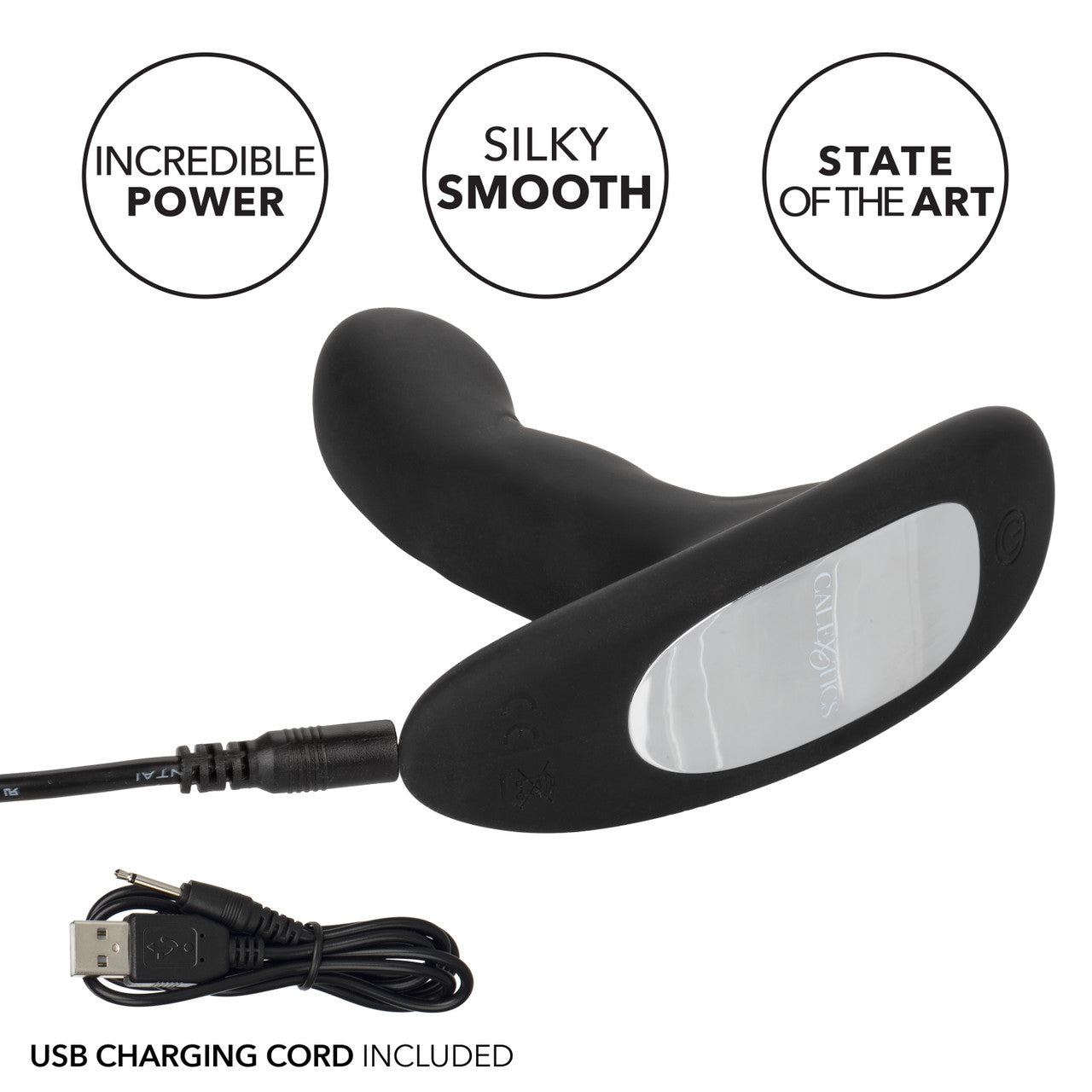 Eclipse Silicone Wireless Rocking Probe the art of anal pleasure from California Exotic Novelties. The Silicone Wireless Rocking Probe is the ticket to a wonderland of naughty anal pleasure for blissful beginners or erotic experts. The 12 function vibrating anal toy combines flexible comfort and intense stimulation with the unique back and forth rocking action and two intense vibration motors. Two powerful vibration motors line the shaft to tease during your most X-Rated moments, while the intense rocking motion and contoured shaft deliver rumbling anal stimulation. Enjoy comfortable insertion, effortless stimulation and gentle removal with the gentle ergonomic shape, flexible design and curved base. Recharge the premium Silicone massager in 80 minutes with the provided USB charging cable to enjoy 45 minutes of high speed stimulation or 75 minutes of low speed vibrations. While the easy button controls the intensity and the plump probe gives you the stimulation you want, the integrated state of the art memory chip remembers just how you like it by starting on the last function used. Get steamy in and out of water with this waterproof plug. Remarkable thrills await with this product, designed to knock knock knock at your back door. The peak of sensual anal pleasure is all yours. This item features a state of the art memory chip that will resume on the last function used. Reignite the pleasure, right where you left off. An ultra power motor means this toy is specially designed for the most intense experience. Bulk weight 5.1 ounces. Materials Silicone, ABS Plastic with Metallic Plating. Functions a variable speed control takes you to the height of gratifying pleasure. You will find sensual stimulation that throbs with excitement. 12 functions bring you thrilling elements of vibration, pulsation, and escalation. Experience the ultimate bedroom adventure! Dual motors mean fantastic pleasure is all yours. Enjoy the ultimate sensual experience on your own or with a partner. 1 year warranty. Battery information this product includes USB charging capabilities. Measurements 4.5 inches by 1.5 inches base. 3.5 inches by 1 inch Probe. Categories: Anal Toys, Prostate Massagers, P-Spot Stimulators, Vibrating Prostate Massagers, Vibrators, Eco-Friendly Sex Toys, Rechargeable Vibrators. 2023.