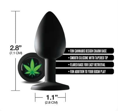 Features: Fun Cannabis Charm Smooth Silicone Tapered Tip For Easy Insertion Flared Base For Easy Removal Fun Addition to BDSM Play Body-Safe Easy To Clean