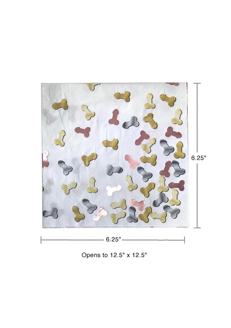 8 paper napkins with a sprinkling of our Glitterati penises in rose gold, gold, silver and bronze. Pair these napkins with all or some of our Glitterati line to bring elegance to your next penis party.