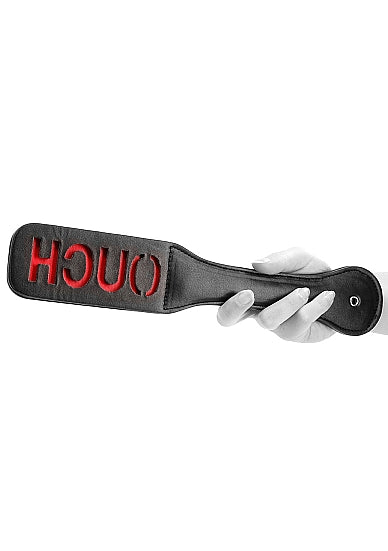 Ouch! Bonded Leather Paddle from Shots Toys. Leave an lasting impression on your sub so they do not forget who they belong to. The word OUCH is reversed so it will show up correctly on the skin. Imprint the word OUCH on your partner. This paddle is made of firm but flexible stitched leather. Up your game with this paddle and mark your sub with your favorite dirty word! Dimensions package 12.99 inches by 3.54 inches by 0.98 inch. Weight package 2.65 ounces. Product dimensions: 12.4 inches by 2.2 inches by 0.35 inch. Product weight 2.75 ounces. Materials Faux Leather. Categories: Bondage, Fetish, Kink, Sex Toys for Couples, Whips, Paddles, Ticklers. 2022.
