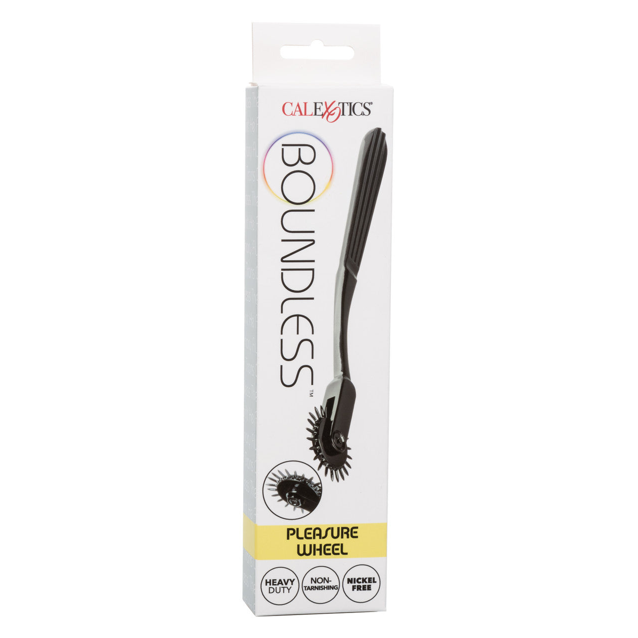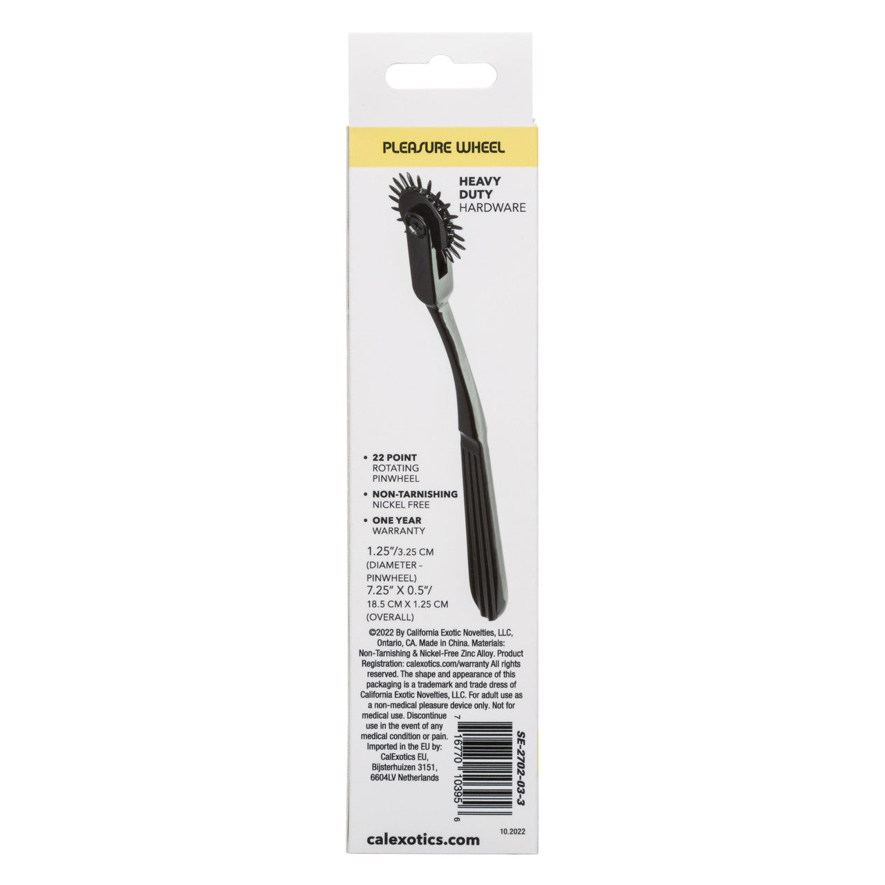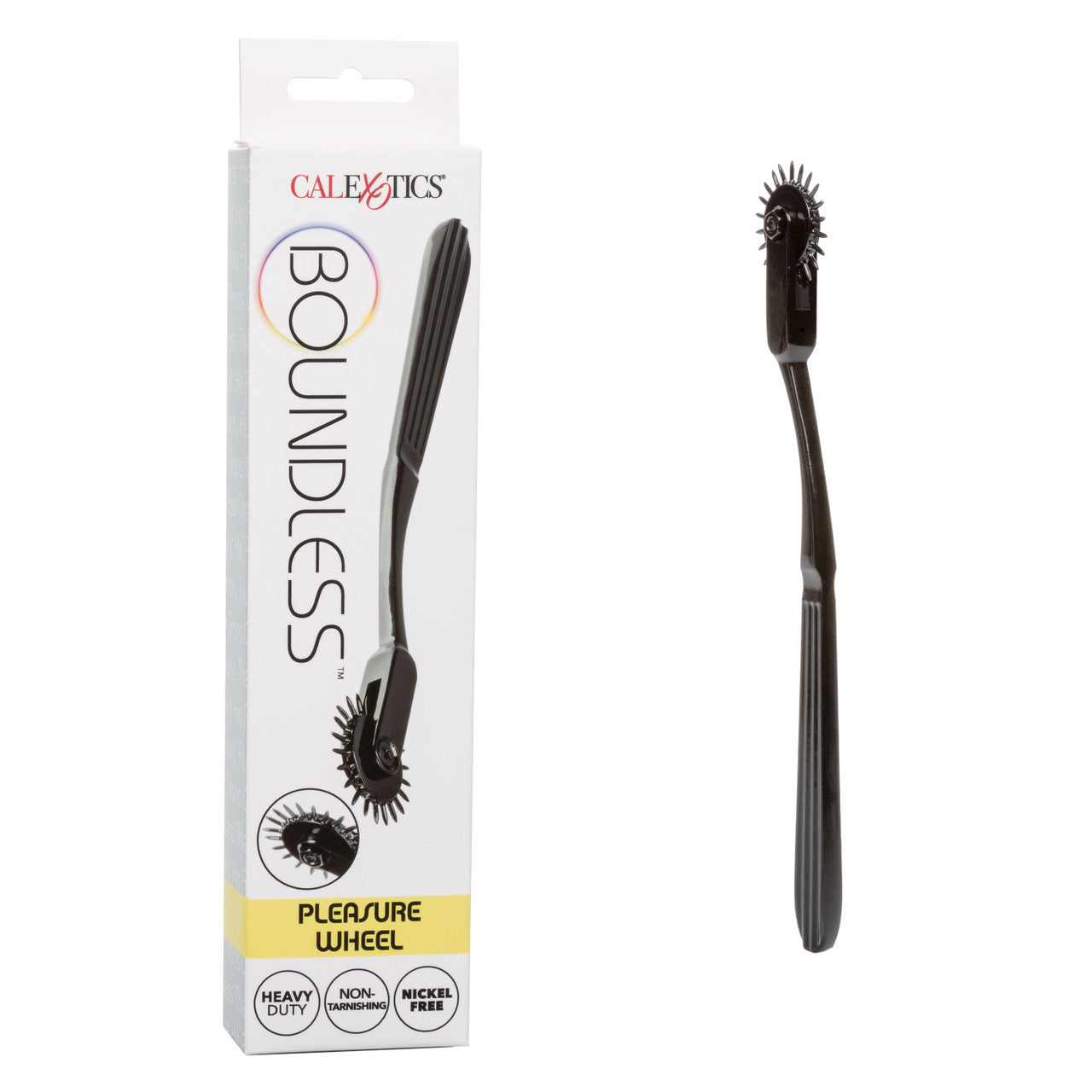 Boundless Pleasure Wheel from California Exotic Novelties. Indulge in endless spine tingling pleasure with the daring Boundless Pleasure Wheel. The teasing pleasure wheel is made to thrill with 22 point rotating pinwheel, heavy duty hardware, and non-tarnishing material. The heavy duty, non-tarnishing material is made to last for endless play time. With every roll across your wanting skin, this passionate wheel will thrill, excite and elevate every intimate moment.