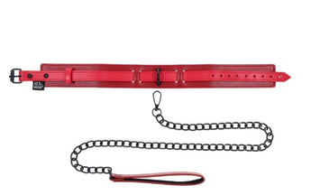 Take control in style with the Ex's & Oh's Collar and Leash. This striking set features a bold, deep red faux leather collar paired with a sturdy matte black chain leash for a look that's as commanding as it is stylish. The adjustable collar ensures a comfortable fit, while the leash's wrist loop keeps everything within reach. Whether you’re exploring dominance and submission or simply adding a touch of flair to your play, this collar and leash set is the perfect addition.