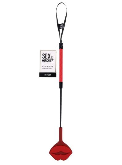 Features: 100% silicone lip-shaped tip delivers a playful sting Add extra fun by applying lipstick to the tip, creating a visual reminder with every smack Wrist loop for secure wear and easy storage Materials: 35% Silicone, 25% Fiber Glass, 20% ABS,15% Zinc Alloy, 5% Nylon
