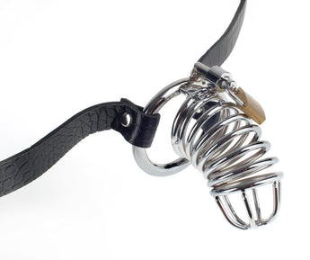 Fetish Fantasy Extreme Extreme Chastity Belt Black Steel Cock Cage. Chasity belt with lock. Lock up your subject's most misbehaved member with the Extreme Chastity Belt. Made from high quality metal and closed with a secure lock, this cage will keep your subject's cock behind bars until you decide when it is a good time to set it free. The waist strap attached to the cage is adjustable to fit most sizes. Attach a leash onto the waist strap and explore all your master and slave bondage fantasies! Punish your subject's misbehaved member with The Prisoner steel cock cage chastity belt. Made from highly polished Steel and secured with lock and key, this shiny Chrome chastity cage will keep your sub's cock behind bars until you decide to set it free. Dare your subject to get a hard on and watch as they struggle inside the prison like confines of the cage. No matter how aroused he gets, the curved steel shape prevents your sub from getting erect, but the open design still allows them the freedom to piss when they need to. You hold the key to pleasure, so make sure they do as you say before you grant them their freedom. The designer alligator style waist strap easily adjusts to fit most sizes and feels great against your skin. Make sure your subject is flaccid before trying to fit his cock into the cage and use plenty of Moist water based personal lubricant to make insertion easy and painless. Attach a leash to the waist strap and explore all your master and slave role playing fuck fantasies! Package depth 3 inches, width 5.5 inches, height 10.75 inches. Package shipping weight 12.40 ounces. Package type box. Materials: Steel, Leather. Country of origin China. Harmonized Tariff Schedule HTS Code 7326908595. Please note the box contains nudity. 90 days warranty. Pipedream Products Catalog - Fetish Fantasy Extreme. Categories: Bondage, Fetish, Kink, Men's Cock, Ball Gear, Body Harnesses, Bondage Restraints, Sex Toys for Men. 2022.