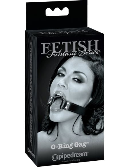 Fetish Fantasy Limited Edition O Ring Gag Black from Pipedream Products. Enter a new world of submission with this naughty O Ring Gag. This beginners friendly gag features a small metal O Ring connected to two sturdy PVC straps. The straps adjust to fit most sizes, pulling the ring tight and keeping the mouth open wide. You are in control of when and how often your lover speaks and what you do now is up to you! O Ring Gag diameter 1.9 inches. Materials: Vinyl, PVC, Metal. One size fits most. 90 days warranty. Pipedream Products - Catalog - Fetish Fantasy Limited Edition. Categories: Bondage, Fetish, Kink, Sex Toys for Couples, Bondage Restraints, Gags, Muzzles. 2022.