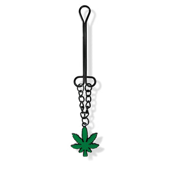 Stoner Vibe Chronic Collection Clitoral Clamp with Chain from Global Novelties. Stoner Vibes Clitoral Clamp slides on easily and applies precise stimulation to where you will feel it most! Hanging from a chain, a fun cannabis charm dangles from the end adding extra pleasure. Super easy to use, the beginner's clit clamp features a slide to fit design that makes adjusting the intensity trouble free. Use on its own or with our fully interchangeable bondage gear companion products from the Stoner Vibes Chronic Collection.