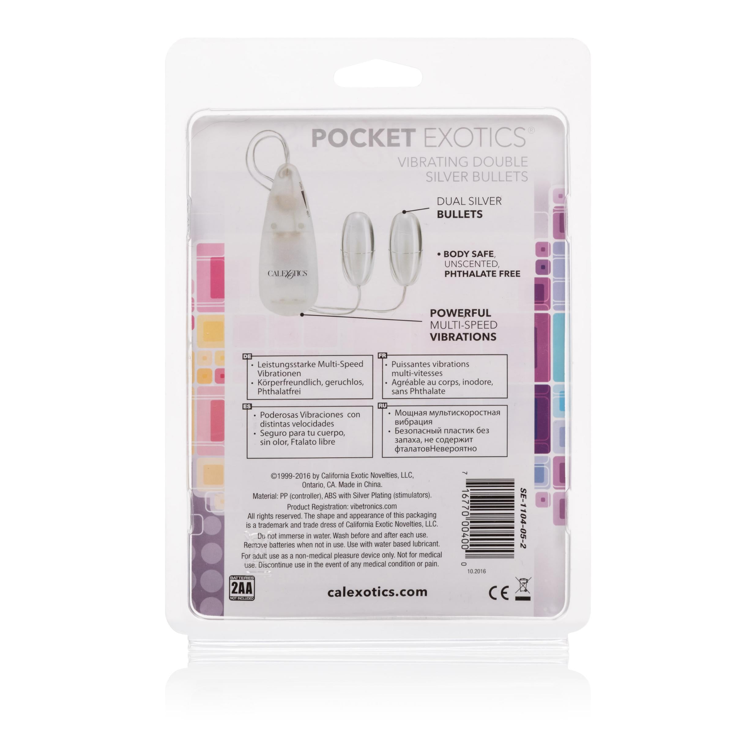 Multi-Speed Vibrating Double Silver Bullets. Compact powerful and pocket sized. Wash before and after each use. Remove batteries when not in use