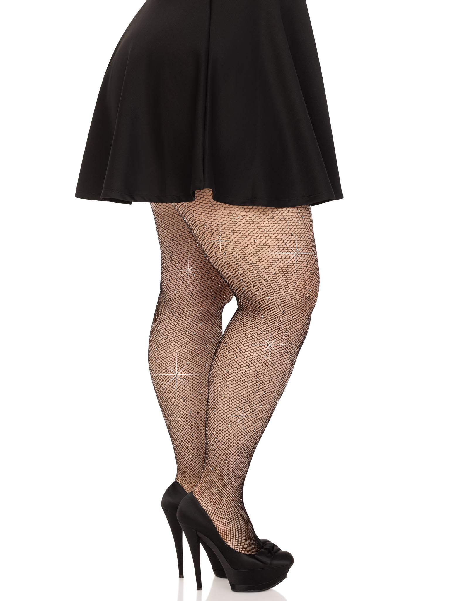 Colby Rhinestone Fishnet Tights - 1x/2x - Black