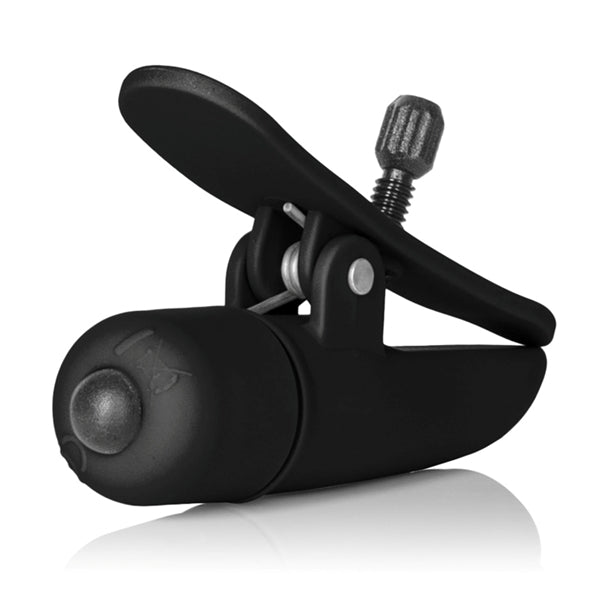 Nipple Play Nipplettes Vibrating Nipple Clamps Black from California Exotic Novelties. Engage in erotic nipple fun with the designer Nipple Play Nipplettes. The fully adjustable multi-use clamps are designed for intimate satisfaction and increased orgasmic ecstasy. The easy to use clamps are suitable for him and her, and ideal for first time and experienced pleasure/pain seekers. The nipple clamps are made from ultra silky smooth ABS Plastic with Polyurethane PU Cote and have a sleek design. The vibrating clamps measure 2.75 inches and have a high intensity wireless motor with easy push button control, for instant arousing fun. Nylon screws allow you to adjust the clamp fit for perfect satisfaction. To power up the sensitive pleasure, push the button located at the end of each clamp and experience tantalizing tingles and mind blowing sensations. To maximize the unforgettable experience, apply a small amount of quality lube or arousal gel to the nipple, before securing the clamps. The nipple clamps are waterproof and great for intimate stimulation during hot tub, bath or shower play. The multi-use clamps can also be used to arouse other sensitive areas of the body. Before and after every use, remember to clean the clamps with a toy cleaner spray. The clamps can also be washed in warm, soapy water. Includes 2 multi-use, fully adjustable designer clamps. High intensity wireless motor with easy push button control. Waterproof for use everywhere. Silky smooth Satin Finish. Safe and pure for body and pleasure made using phthalate free materials ABS Plastic with Polyurethane PU Cote nipple clamps, Thermoplastic Elastomers TPE buttons, Nylon screws. 2.75 inches length. Vibrating clamps requires 6 watch batteries. 12 included. Bulk weight 1 ounce. 1 Year Warrnaty. Categories: Bondage, Fetish, Kink, Vibrators, Nipple Play, Sensual Kits, Bondage Kits, Kinky Sets. 2023.