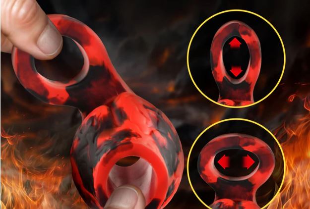 Become the wolf of your partner's dreams with this Hell Hound sleeve and ball stretcher! It fits over your shaft, adding pressure to your rod, while also wrapping around your balls and stretching them! Made out of premium, phthalate-free, body-safe silicone, it is best used only with water-based lubricants only. Enhance your playtime and the sensations by giving yourself a rod that gets thicker by adding these two bulging, wolf-knots at the base! It stays in place due to the ball stretcher wrapped around your family jewels, and essentially tugs your balls every time your partner goes deep! Enjoy adding this to your kinky cosplay and fantasy roleplay while indulging with your partner! After use, wash it with warm water and mild soap, then rinse it off and spray it with a toy cleaner. Pat dry and store in a cool, dark place.