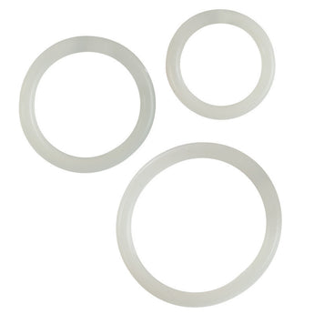 Tri-Rings Glow In The Dark from California Exotic Novelties. Take your intimate pleasure to new heights with the exotic Tri-Rings Glow In The Dark. The easy to use erection enhancer rings elevate your arousal and stimulation, for maximized and prolonged satisfaction after lights out. Select your preferred Ring dimensions, and super size your package for an unforgettable tantalizing experience every time. The erotic Rings are designed to slide comfortably onto the erect penis, for stamina support and extended play. The multi-purpose rings are made from smooth, flexible Rubber and have a Glow in the Dark finish. The 3 versatile Rings measure 1.75 inches and a generous 2.5 inches and are easy to fit, comfortable to wear and quick to remove. For indulgent sensual pleasure after dark, slip on your preferred ring and satisfy your intimate desires. For increased sensitivity and mind blowing sensations, always use a quality water based personal lubricant with this sex toy. The enhancer Rings are great for a spontaneous play that is unlimited. The multi-size Rings are perfect for first time and experienced users, and suitable for self gratification exploration and extended couple’s play. Use your imagination and explore secret fantasies and wild dreams with the Glow in the Dark enhancers that extend your personal satisfaction. Before and after every use, clean the rings with a toy cleaner spray or wash in mild soapy water. Set includes one each size: medium ring, large ring and x-large ring. The unstretched diameters are the following 1.75 inches, 2 inches, and 2.5 inches around. Bulk weight 0.4 ounce. Safe and pure for body and pleasure. Made using phthalate free, non-toxic materials Rubber. Made in the USA. Sex toys and sexual wellness. Wash before and after each use. Always use a water based personal lubricant with this product for maximum pleasure. Important warning: this novelty product is intended as a sexual enhancing aid. Not intended for contraception/birth control or treatment of erection conditions. Use no more than 30 minutes at a time. Allow 60 minutes between additional uses. Do not fall asleep or be under the influence of alcohol or drugs while using this product. Prolonged use without removal may result in bruising to the base or permanent injury to the penis. Consult you physician should any complications should occur and discontinue use immediately. Categories: Love Rings, Cock Rings, Men's Cock and Ball Gear, Cock Ring Trios. 2023.