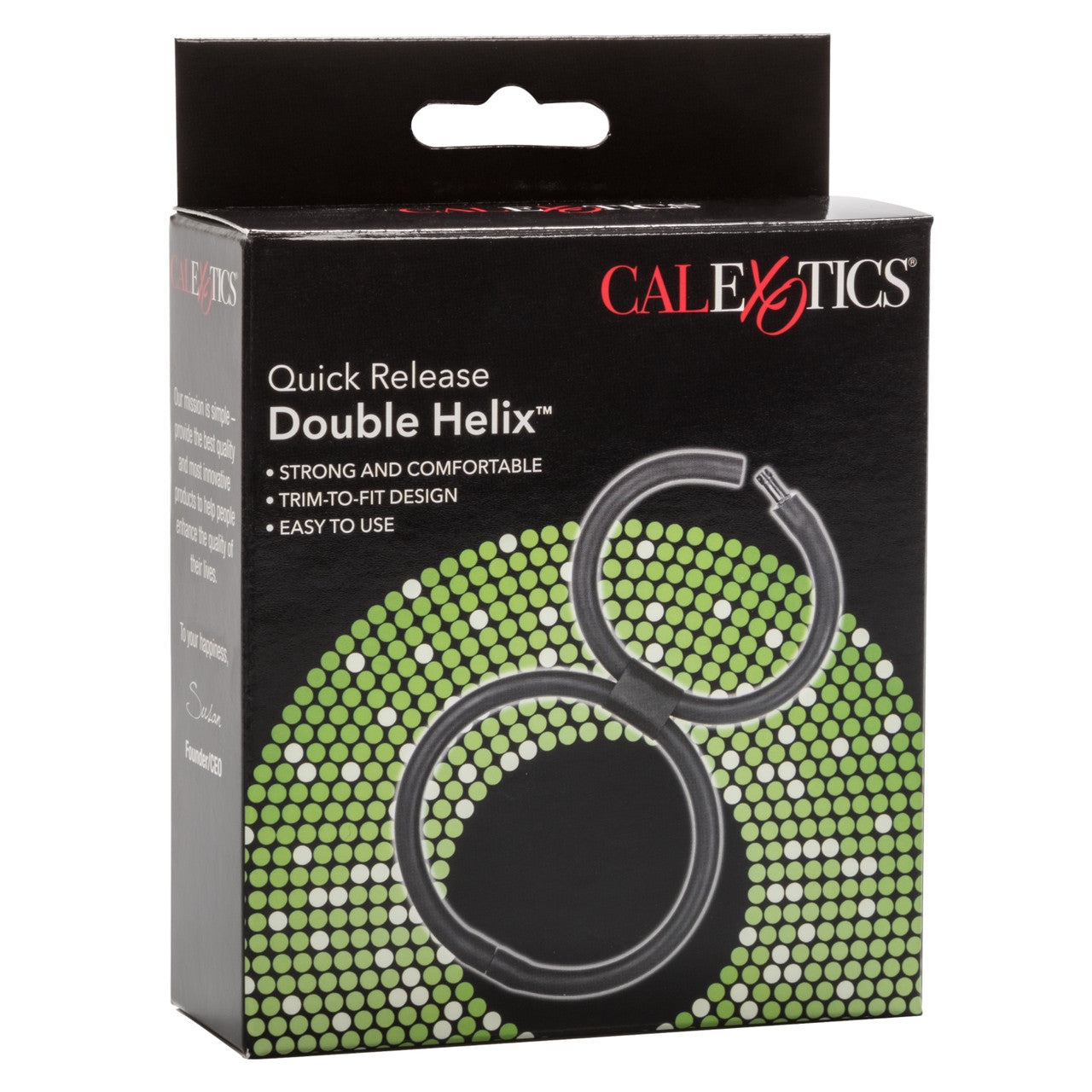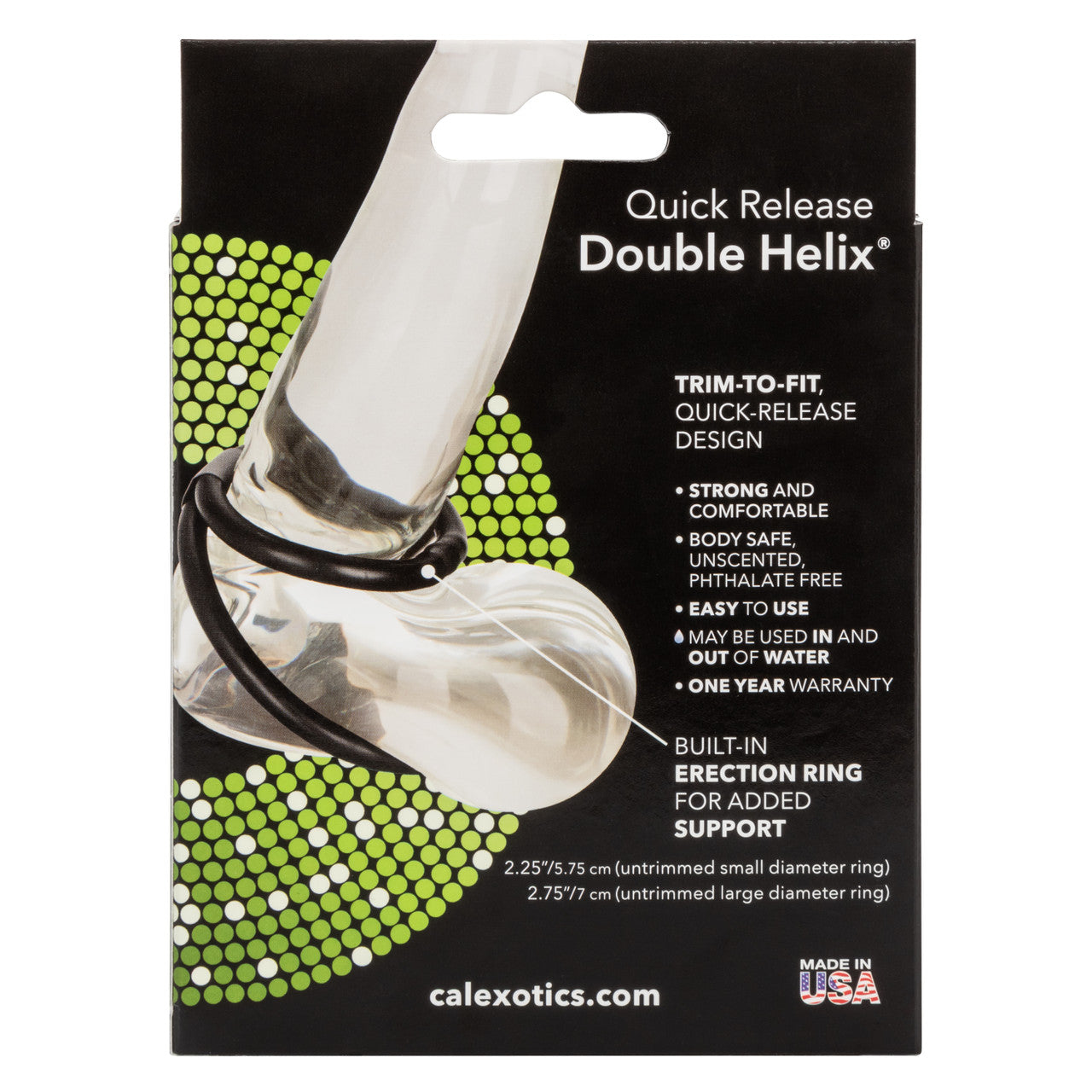 Double Helix Quick Release Erection Enhancer from California Exotic Novelties. Enjoy double the arousal, stimulation, and extended play fun, with the Double Helix Quick Release Erection Enhancer. The easy to use enhancer is designed to offer a sensuous personalized fit for maximized seduction pleasure and a prolonged rock hard performance. Indulge in mind blowing encounters and endless erotic satisfaction every time. The Enhancer is made from soft rubber and features two individual rings that are designed for personalized trim to fit sizing and ensure ultimate comfort for stamina support that goes on and on. To use the Double Helix shaped enhancer, slip the large Ring around the Scrotum and the smaller Ring around the base of the Erect Penis and trim the tubed Rubber bands to size. Securely snap the two ends of each ring together and prepare for tantalizing sensations. Suitable for first time and experienced users, the Enhancer is great for spontaneous exploration. To experience a longer lasting erection, slip the Quick Release Rings on, and enjoy unlimited intimate play. To increase the pleasurable tingles, always use a quality lube with this toy. Before and after every use, remember to clean the Rubber Enhancer Rings with a toy cleaner spray, or wash in warm soapy water. Rinse with warm water. Pat dry before storing. Arouser is a trim to fit Cock Ring. Quick Release Double Erection Enhancer. Safe and pure for body and pleasure. Made using phthalate free, non-toxic materials Rubber. Large Ring measures 2.75 inches in diameter. Small Ring measures 2.25 inches in diameter. Bulk weight 0.4 ounce. Pursuant to 18 U.S.C. 2257, Double Helix was produced on December 12, 1997, and the records required to be kept by that law are available at 14235 Ramona Avenue, Chino, California 91710. Custodian of Records: Susan Colvin. Double Helix is a registered trademark for California Exotic Novelties. Sex toys and sexual wellness. Made in the USA. Categories: Bondage, Fetish, Kink, Love Rings, Sex Toys for Couples, Men, Cock Rings, Men's Fetish Wear, Men's Cock and Ball Gear. 2023.