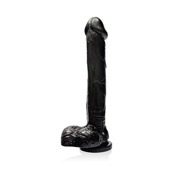 Cock with Balls 9 inches black with suction cup. Explore more, love more and feel more! Ignite by Si Novelties is there to help Ignite your passion over and over and over again! Plastics containing phthalates can be harmful to your health and have raised environmental concerns. Our phthalate free plasticize is made from the highest medical grade components and is approved by both the EU and FDA. Suction cup makes dildo harness compatible. Measures 9 inches by 1.9 inches.