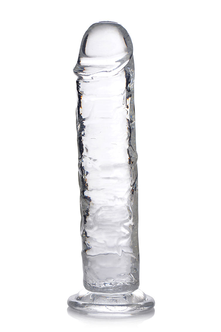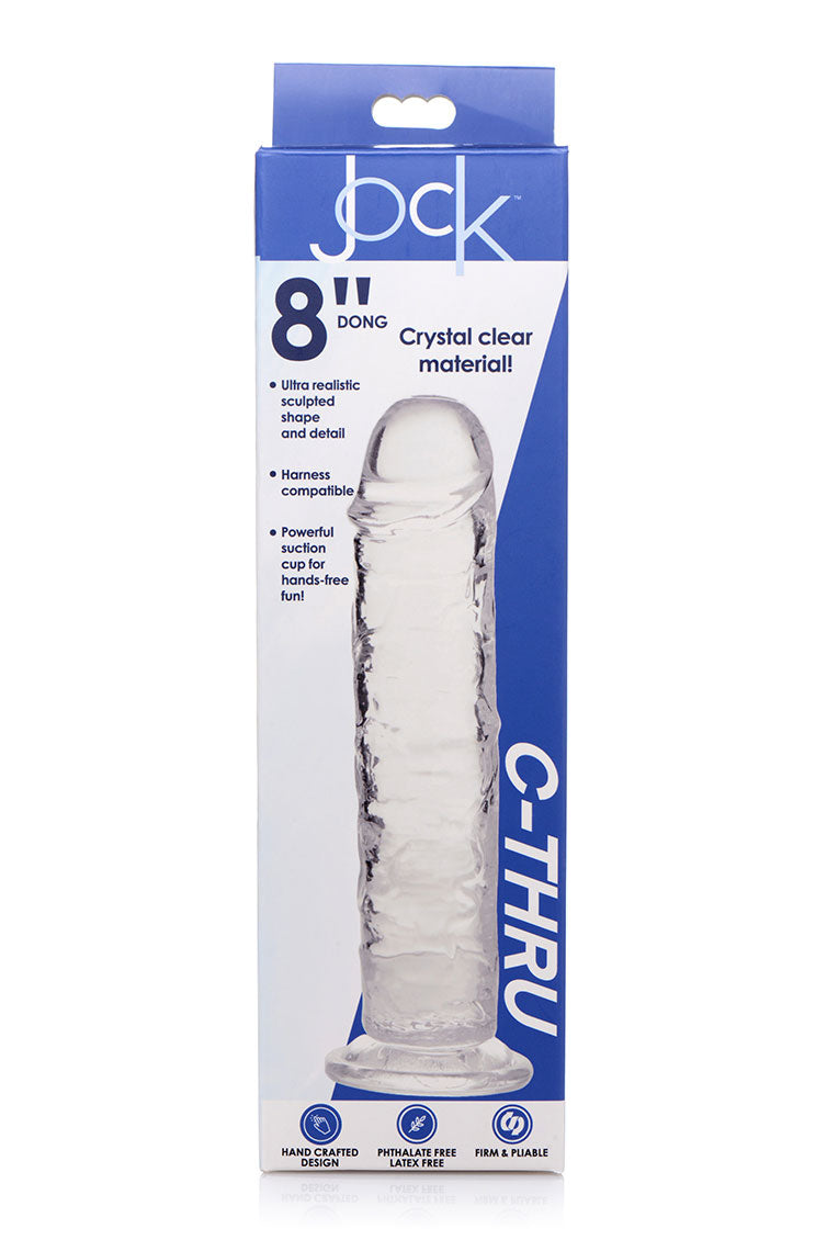 Jock C-Thru 8 inches Clear Dildo Thermoplastic Elastomers TPE from Curve Novelties. Crystalline TPE Dildo: Ultra clear. Super flexible. Lifelike detail. Mega suction. Harness compatible. Low maintenance. Easy to clean. Waterproof, non-vibrating Dildo. Color: Clear. Extreme flexibility. Realistic penis design. Slim girth. Strong Suction Cup base. Ultra clear.