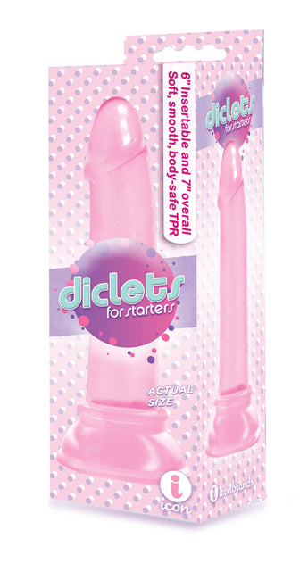 Talk about pretty-in-pink! Diclets by Icon Brands are the cutest pink "dillio" to hit the adult market in years. Soft, smooth, and bendable, 7" of insertable pleasure never felt so good ... or looked so good. With its jewel-like pink color, silky texture and extra-strong suction cup ( perfect for shower play), you'll be glowing and it'll be gleaming. Satisfy your sexual appetite with a playful pink Diclet.