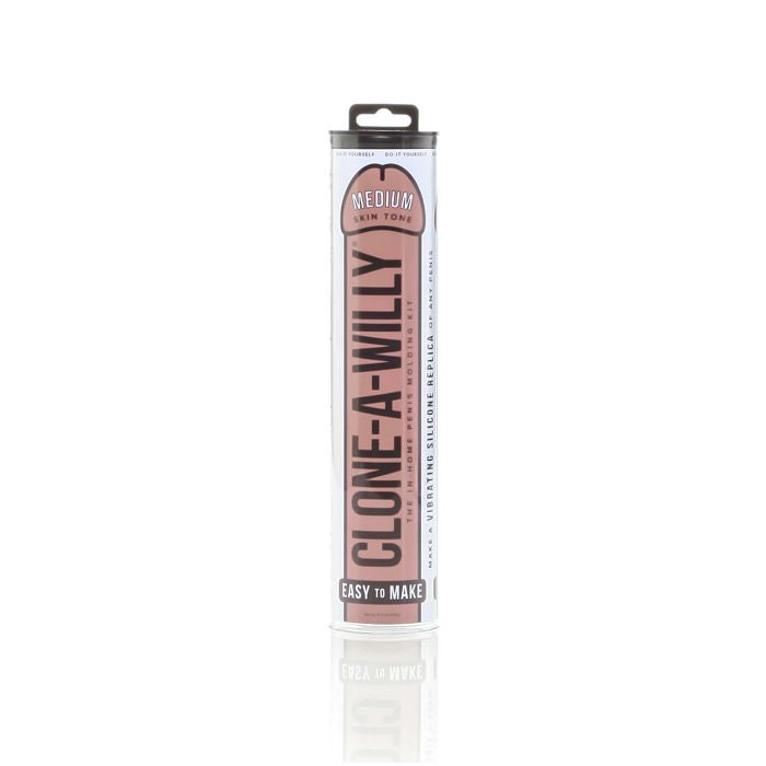 Clone A Willy Medium Tone. The original penis casting kit! The 100% platinum cure silicone Clone-A-Willy penis casting kit is available in 8 colors! This fun, body safe kit lets you make an exact, silicone replica of your willy: it even vibrates! Be sure to check out the chocolate version. This casting kit lets you make an exact vibrating silicone replica of any penis, safely and easily in the comfort of your own home. Clone-A-Willy's penis casting kit uses medically tested molding gel that captures incredible lifelike detail, making it the most personalized cock casting kit on the planet. It is fun and easy to do! Each home made dildo kit comes with everything you need: body safe Medium Skin Tone Silicone. One bag of Algae based molding powder. Molding tube. Vibrating unit. All materials and packaging made right here in Portland, OR, USA Color Medium Tone. Vibrator requires 1 AA battery, not included. 16.