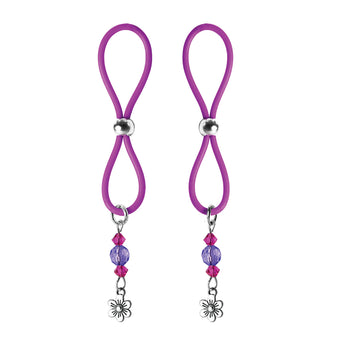A simple and sexy way to adorn the nipples. Body safe silicone halos will tighten around the base of the nipple by sliding the bead to the desired pressure. Enjoy increased sensitivity to your nipples while looking beautiful.