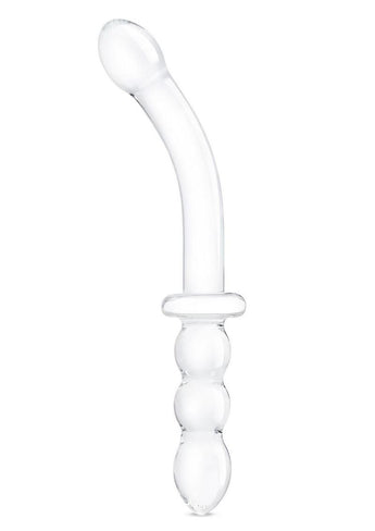 Enter a world of pleasure with the Glas 12" Girthy Ribbed G-Spot Glass Dildo that's crafted with two distinctly shaped ends to satisfy your every need. A smooth, curved end features teardrop-shaped tip for targeting the G-Spot. On the opposite end, a series of sensual beads amplifies your experience, promising waves of sensuous pleasure. Made from body-safe, hypoallergenic glass, this glass toy is easy to clean, ensuring convenience and hygiene, while this thrilling material can also be used for temperature play awaits your exploration b simply heat or cool the dildo to enhance your sensory adventures. Compatible with all lubricants, pair this dildo with your favorite lube.