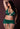 This exquisite wholesale emerald green lingerie set from Magic Silk's Evermore collection includes a bralette with scalloped edges and strappy accents, a garter skirt with side slits, and a matching lace thong. Crafted from stunning emerald lace paired with soft, sheer mesh, the set is enhanced with satin bows, gold-tone hardware, and adjustable garter straps. The luxurious design makes this set a standout in any retailer's inventory, perfect for customers seeking bold and sophisticated lingerie.