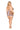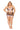 Leopard printed mesh with contrast scalloped lace bralette, garter skirt, and G-String. Triangle soft cups with waist tie straps. Garter skirt with side garters and back lace-up. Matching G-String (stockings sold separately).