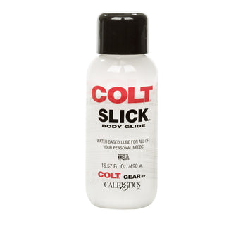 Colt Slick Personal Lubricant 16.57 ounces. Colt Slick Lube is a sensually gratifying water based personal lubricant that will enhance your pleasure and make your fun more intense. Use the lube your favorite Colt stars use. Colt Slick Lube is Latex condom compatible, and offers the ultimate in all your personal lubricant needs. Intensify your gratification in the utmost comfort with this super slippery and fantastically sensual lube. Indulge yourself and your partner. What are you waiting for? Enjoy smooth and stimulating pleasure that will help you glide into a thrilling, hot experience that can not be beat. In fact, Colt Slick Lube is the perfect accessory for your bedroom, to send you on your way to a more exciting and sexy adventure. So, get ready, get set, and stay going longer - Colt Slick Lube gives you exactly what you need to get exactly what you want. Water based personal lubricant for all your personal needs made exclusively for Colt. Latex condom compatible. Sex toy friendly. Ingredients: Deionized Water, Glycerin, PEG-8, Aloe Vera Extract, Carbomer 940, Carboxymethyl Cellulose, Tetrasodium EDTA, Methylparaben and DMDM Hydantoin. Colt is a register trademark for California Exotic Novelties. Sex toys and sexual wellness. Made in the USA. Categories: Anal Toys, Lubricants, Water Based Lubricants, Anal Lubes, Lotions, Sprays, Creams. 2023