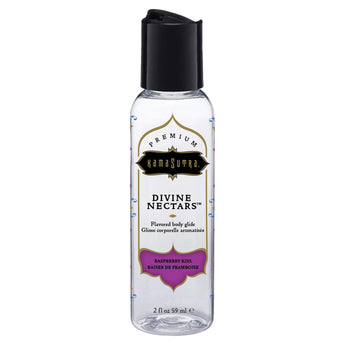Divine Nectars Raspberry Kiss 2 ounces from Kama Sutra. Kama Sutra’s Divine Nectars is a water based, flavored body glide. Use it anywhere on the body. Adds the perfect amount of slip and glide to any intimate activity with a splash of juicy, kissable flavor! Drizzle all over the body. Anywhere you want to kiss or be kissed. Rub it, kiss it, lick it. The possibilities are endless.