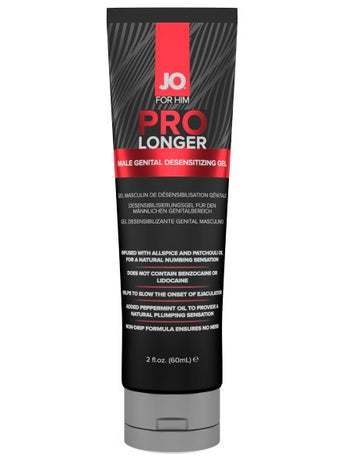 JO Prolonger Gel Desensitizer Benzocaine Free 2 ounces from System JO. Maximize pleasure with JO Prolonger Gel, a regular strength gel that uses natural numbing ingredients to slow the onset of ejaculation. The addition of peppermint oil is designed to enhance the prolonging effect while also providing a natural plumping sensation. Perfect to use during solo play and foreplay, this gel offers a more thrilling application, with a longer lasting effect. Key features: cream improves sensation. A nature inspired delay gel. All spice and patchouli oil provide a natural numbing effect. Ideal for men who want longer lasting effects with a regular strength formula. Ingredients: Water, PEG-7 Glyceryl Cocoate, Laureth-9, Cyclopentasiloxane, Cyclotetrasiloxane, Polyacrylamide, Oat Amino Acids, PEG-40 Hydrogenated Castor Oil, Ammonium Acryloyldimethyltaurate/VP Copolymer, Polystyrene, C13-14 Isoparaffin, Dimethiconol, Laureth-7, Pimenta Officinalis Pimento Leaf Oil, Pogostemon Cablin Oil, Mentha Piperita Peppermint Oil, Benzyl Alcohol, Methylchloroisothiazolinone, Methylisothiazolinone. Categories: Lubricants, Desensitizing, Water Based, Gels. 2024.