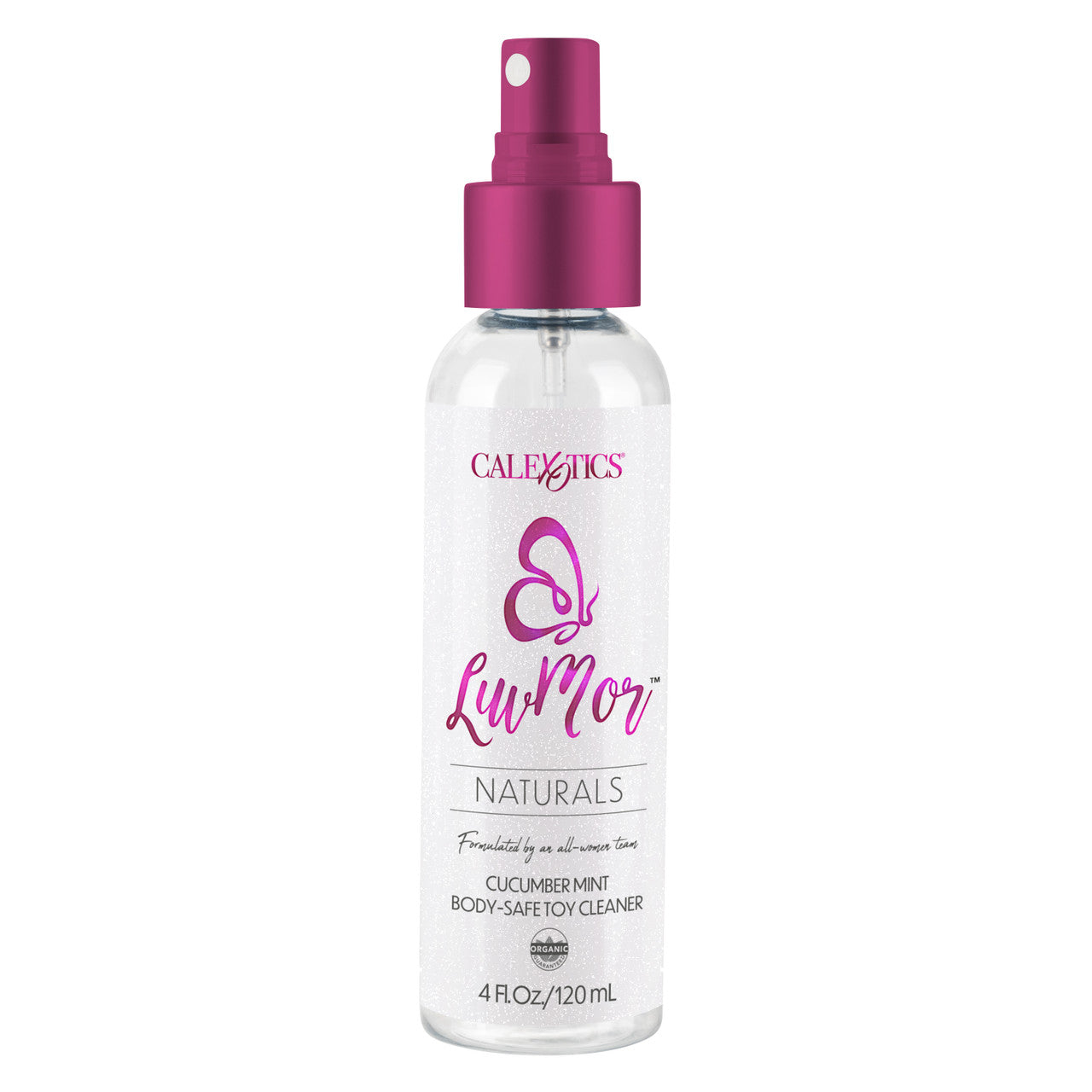 Luvmor Naturals Cucumber, Mint Body Safe Sex Toy Cleaner 4 fluid ounces from California Exotic Novelties. Formulated by an all women team! The Luvmor Naturals Cucumber, Mint Body Safe Toy Cleaner keeps things clean, so you can get back to getting down and dirty without a worry. While showing yourself a little more luv is what it is all about, disinfecting toys regularly is an important part of maintaining your pleasure play. To properly remove lubricants, fluids and bacteria, the natural and organic toy cleaner is a powerfully safe and effective intimate toy cleaner. Our powerful germ killing cleanser has been formulated to gently disinfect erotic playthings and sex toys and leave only a fresh, natural scent. Safe for all surfaces including your skin, this organic, water based cleaner is made with natural ingredients that are non-drying, pH friendly and free from artificial fragrances and colorants. Blended in the USA. The cleaner is supplied in a handy 4 ounces bottle, with a convenient ergonomic pump action spray nozzle for direct application. The water based cleaner is sure to prolong the life of adult toys, so you can enjoy a long relationship with your favorite bedroom buddies.