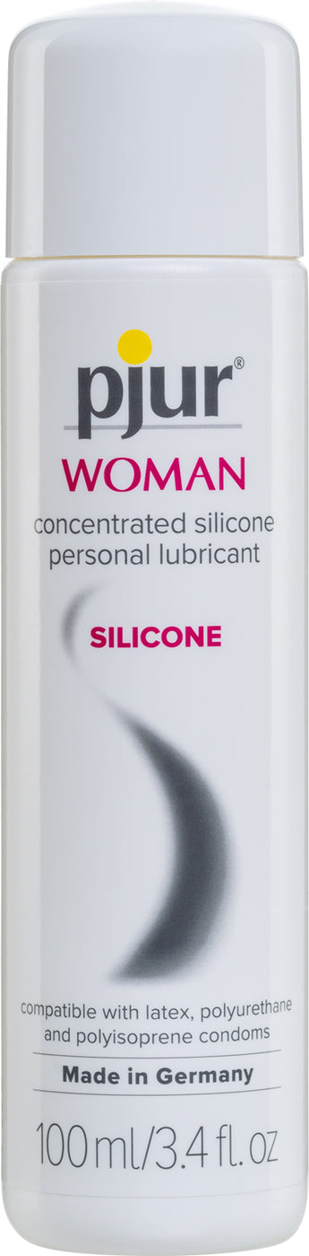 Pjur Woman 100ml e or approximately 3.4 ounces is specially formulated for women's soft and sensitive skin. Provides extra long lasting lubrication for massage. Pjur Woman is a softer, less viscous formula that provides extra long lasting silky personal lubrication. Aids in the comfort and pleasure of intimacy. May also be used for massage and skin conditioning. Only a few drops are needed. Never gets sticky or dries out. Leaves your skin soft and smooth. Non-irritating for vaginal mucous skin. Does not block pores. Product is not made with fats, fragrances, paraben, preservatives or water. Neutral taste and odor. Directions for use: apply to any area of the body where you desire extra moisture. Replace cap after use. Safe for daily use. Store at room temperature. Ingredients: Cyclopentasiloxane, Dimethicone, Dimethiconol. Warnings and precautions: avoid contact with eyes. Keep out of the reach of children. Do not use on irritated or infected skin. Product is not a contraceptive and contains no spermicide. If irritation or discomfort develops, discontinue use and consult a health care professional. Very slippery on surfaces so clean spills immediately and use special caution in bath and shower areas. Pjur personal lubricants meet the quality standards of US health authorities.