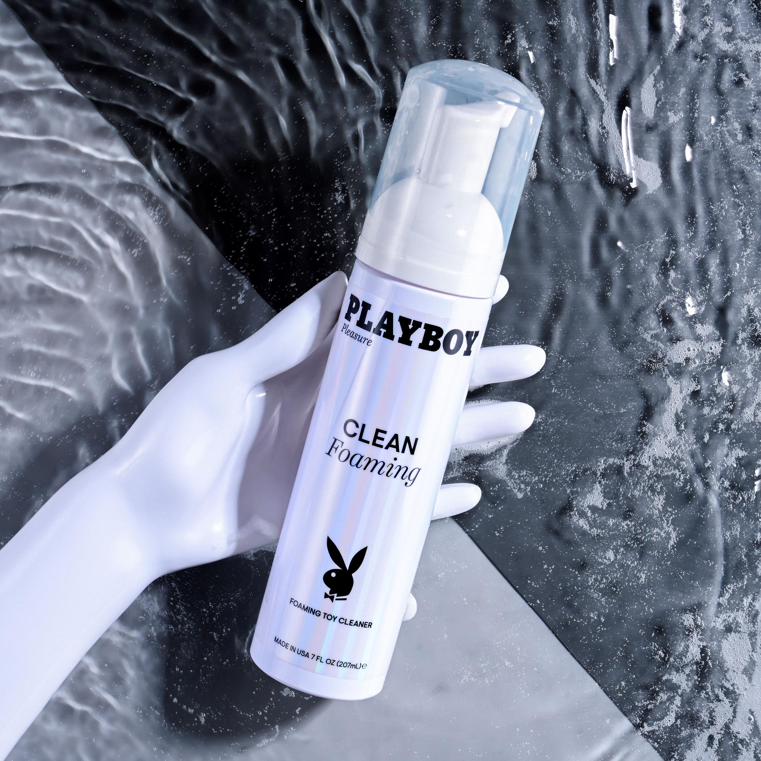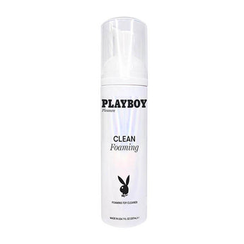 Playboy Pleasure Clean Foaming Toy Cleaner 7 fluid ounces from Evolved Novelties. Clean Foaming is a cleanser designed to clean toys. The gentle formula is fast acting and leaves no residue. Ingredients: Water, Cocamidopropyl Betaaine, Propylene Glycol, Phenoxyenthanol Chloride, Zinc Glucate. Warnings: if irritation discontinue use and consult a physician. Keep out of reach of children and pets.