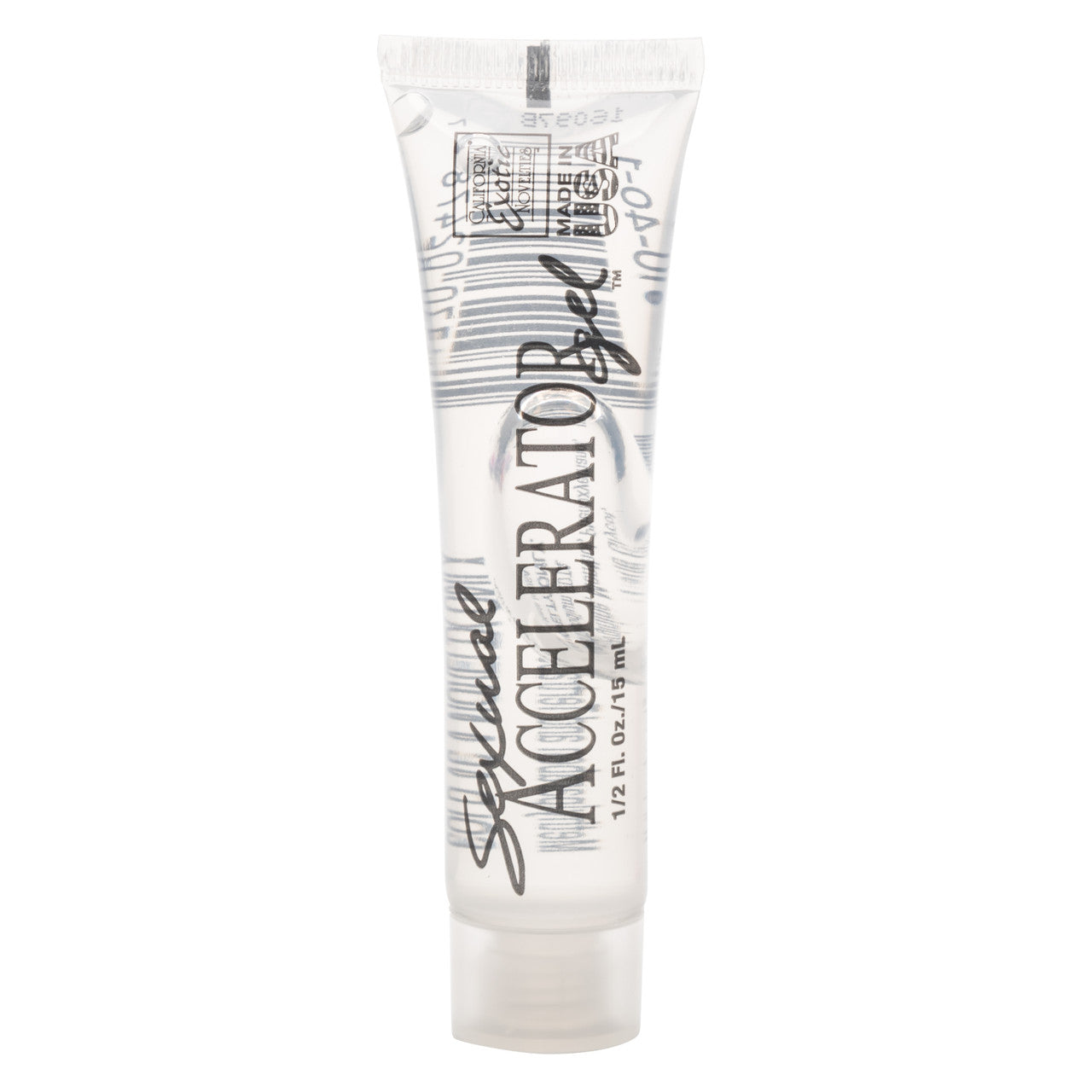 Sexual Accelerator Gel .5 ounce from California Exotic Novelties. If you have trouble reaching climax, suffer from decreased sensitivity, or just want to reach the greatest possible heights of pleasure, our Sexual Accelerator Gel is at your service. This water soluble Gel can be applied topically to send your pleasure sky rocketing to intense and exciting new places. This Gel is perfect for use solo or with a partner. Apply a few drops directly to your Clitoris, and then explore the heavenly tingly sensations and increased pleasure with your fingers or a favorite toy. Or get adventurous with a partner and apply the gel before lovemaking, then have them go to town with the moves that drive you wild and enjoy the new sensations that ensure. Made with the sexual stimulant L'Arginine, which increases Clitoral sensitivity as well as frequency of orgasm. More orgasms and easier, more satisfying finishes are at your fingertips. A half of an ounce of the sensitivity inducing Gel are ready to enhance your sexual pleasure as often as you please and you just might not be able to get enough! Sexual Accelerator Gel formerly Tera Patrick line. Increases clitoral sensitivity. Water soluble topical Gel contains L'Arginine, which increases Clitoral sensitivity as well as frequency of orgasm. Non-graphic tube contains 0.5 fluid ounce. Bulk weight 0.6 ounce. Sexual Accelerator Gel is a registered trademark for California Exotic Novelties. Sex toys and sexual wellness. Made in the USA. Categories: Erotic Body Lotions, Lubricants, Gels, Health and Beauty Aids, Sex Toys for Women. 2024.