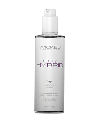 Wicked Simply Hybrid Lube 4 ounces. Do it simply. Simply lubricants are made without Glycerin, Propylene, Glycol or Parabens and are vegan and cruelty free. Like all Wicked Sensual Care formulas, they are enhanced with our signature Olive Leaf Extract, a natural bio static, that inhibits the spread of harmful bacteria and microorganisms. When you are ready for a clean lube, do it simply. A clean and simple water and silicone blend. Compatible with silicone toys. 4 ounces bottle of the Simply Hybrid Personal Lubricants. A creamy, realistic looking hybrid unlike any other, simply Hybrid is truly the best of both worlds. Incredibly smooth and long lasting, this perfectly blended combination of water based and silicone lubricants is free of Glycerin, Propylene Glycol, and Parabens. simply Hybrid is vegan, cruelty free, and is enhanced with our signature antioxidant rich Olive Leaf Extract, providing its moisturizing and biostatic properties. When you want a clean lube, do it simply. Enhanced with Olive Leaf Extract. Safe for use with all toy materials. Great for all types of play. Latex condoms compatible. Sex toy friendly. Long lasting. Realistic look and feel. Vegan, no animal by products or animal testing. Directions: apply to areas where lubrication is desired. Cleans away easily with water. Ingredients: Water, Propanediol Corn, Polyglyceryl-2 Stearate, Glyceryl Stearate, Stearyl Alcohol, Cyclopentasiloxane, Dimethiconol, Cyclohexasiloxane, Olea Europaea Olive leaf extract, Hydroxyethylcellulose Tree Bark, Citric Acid, Sodium Benzoate,Potassium Sorbate.Categories: Lubricants, Water Based Lubricants, Health and Beauty Aids. 2023.