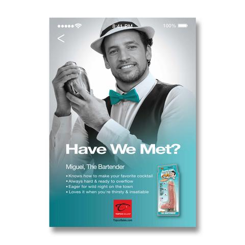 Average Joe The Bartender Miguel from Topco Sales. Average Joe consumers want dongs in average sizes, so Topco added six realistically sized dongs to Wildfire with the Average Joe line. Average Joe The Bartender, Miguel package has a unique story and a biography to sell the fantasy that this guy is awesome; it is just his ding-a-ling that is average. True to life sized dong: 6 insertable inches. Realistic tip and veined shaft. Realistic, tight balls. Harness compatible suction cup base. Waterproof for play outside the bedroom. Made using phthalate free, non-toxic materials. Thermoplastic Rubber TPR. A water based lubricant is recommended. Line: Wildfire. Sub line: Average Joe. Category: Dongs. Sub category: Non-vibrating.