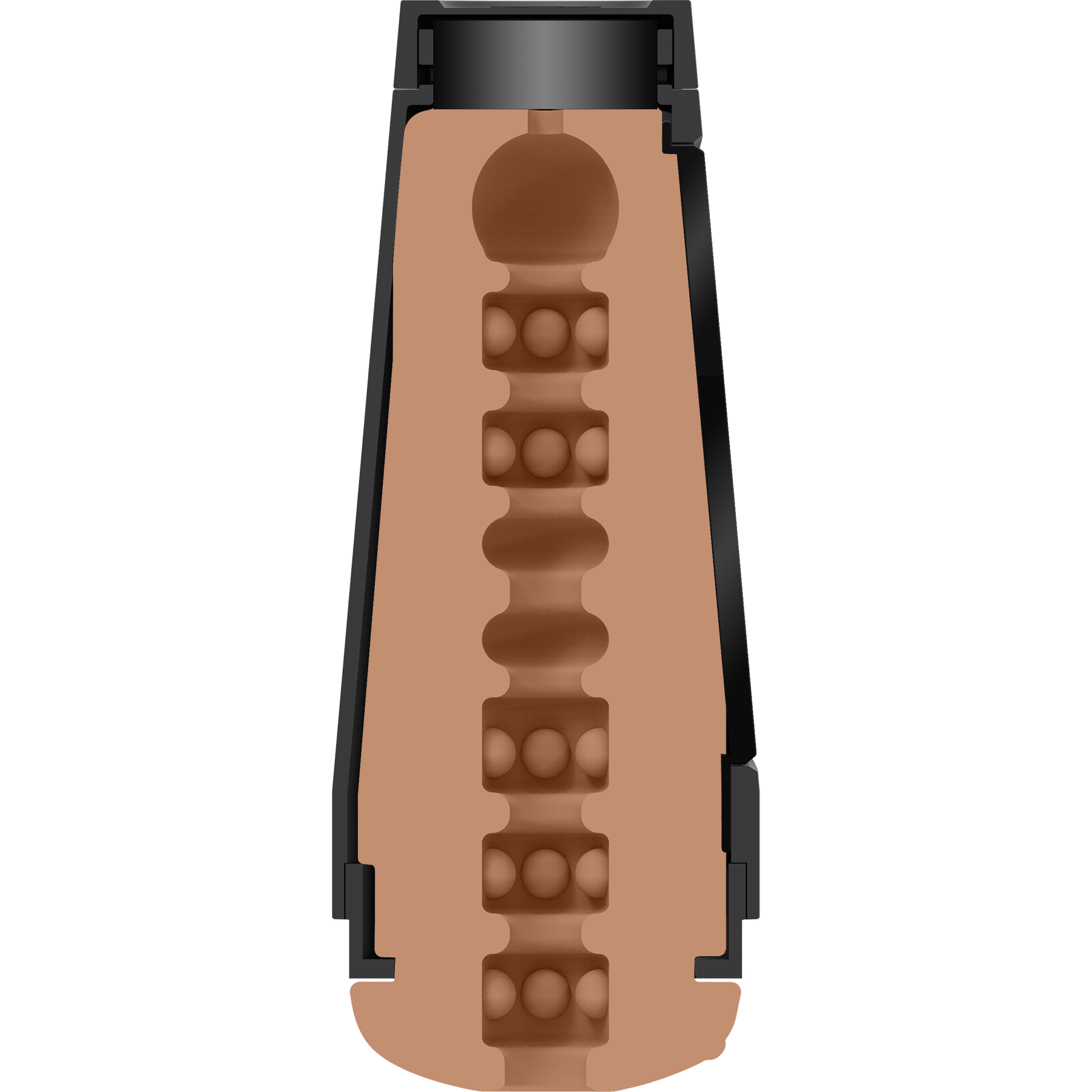Doc Johnson's Main Squeeze line puts the power in your hands thanks to it's squeezable plate built into the hard cases that lets you control the pressure and tightness of each stroke. The base of the case can also be twisted to adjust suction strength.