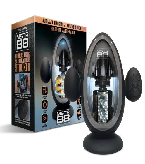 Get ready to blast off to new levels of pleasure with the MSTR B8 Blast Off Stroker! With 7 thrusting modes and 3 rotation speeds, this stroker will take you on a wild ride. The realistic moaning, soft tunnel, and LED lights add to the experience while the suction cup and USB charger make it convenient. Thrust, vibrate, and blast off! Product