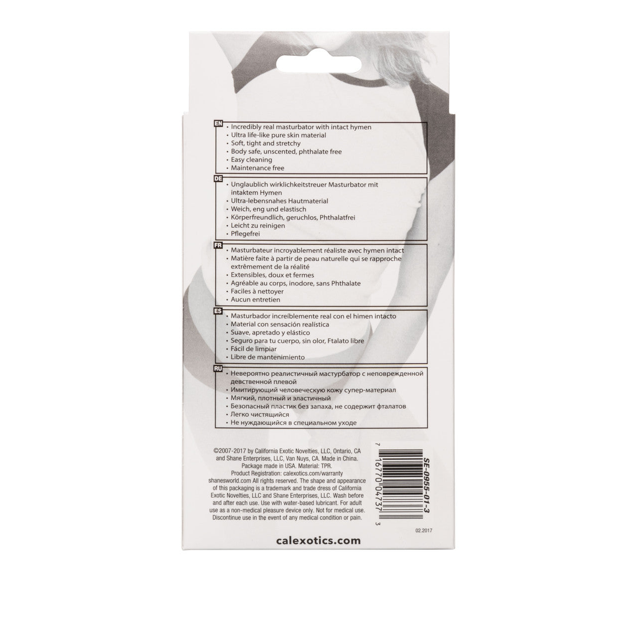 Shane's World Virgin Stroker from California Exotic Novelties. Can not get that unmatched first time off of your mind? Do you always wonder what it feels like to be the one who penetrates a girl for the first time? Plunge inside the Shane’s World Virgin Stroker and find out. This incredibly life like Masturbator is made of Pure Skin material for an experience that feels just like the real thing. Take it slow if you are feeling romantic or thrust quickly inside like you wish you could do with that freshman cutie. This tight little newbie comes with an intact Hymen so the experience is ultra realistic. Lube up or even soak her in warm water for a few minutes and get ready to explore uncharted territory. She also comes complete with youthful labia to wrap around your cock as you thrust and even has a Clitoris to play with for those that crave the full experience. This Stroker is body safe, unscented and phthalate free. The design is easily cleanable and maintenance free for simple, satisfying pleasure. Show her the time of her life and pop that cherry tonight. Shane's World Virgin Stroker go ahead pop my cherry, big boy! Just like the first time! Super soft and tight Futurotic Masturbator with an intact hymen. Safe and pure for body and pleasure. Made using phthalate free, non-toxic materials Thermoplastic Rubber TPR. Hand held Stroker measures 5 inches long by 2.5 inches wide. Bulk weight 5.9 ounces. A water based lubricant is recommended. Always clean before and after use. How to use: prepare by applying a water based personal lubricant to your Penis and Masturbator. Power and motion: insert Penis into Masturbator. Cleanse and care: run water and apply a mild soap or wipe with a choice toy cleaner. Then let air dry apply a light coat of corn starch and wipe excess to refresh Masturbator. Shane's World Virgin Stroker is a registered trademark for California Exotic Novelties. Sex toys and sexual wellness. Categories: Male Masturbators, Sex Toys for Men, Solo Masturbators, Pussy Strokers,Masturbation Sleeves. 2023.