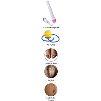 Take Alluring Rosita home and do her any way you like. Gaze into Rosita’s realistic, molded face with big gorgeous eyes and long flirty eyelashes. Grab her flowing hair as you slide your cock into her inviting mouth. Feel her realistic pink lips, squeeze her soft perky breasts and tease her erect nipples. Run your hands down Rosita’s slender waist and shapely hips while you plunge into her amazingly realistic soft pussy, which looks and feels just like the real thing! This inflatable sex doll is a life-size brunette and comes to you in standing pose ready for you to bend her in any position you like! Her warm tight ass and specially contoured Vagina will make you explode every time! Rosita will most definitely take your next sexual sensual encounter to a new level!