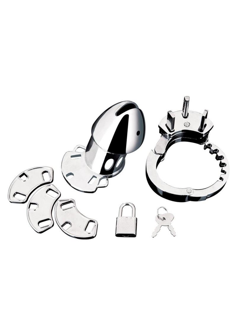 Take control of your partnerb s arousal with a cage that covers the top of his shaft with an almost solid sheath that also has openings for comfort. This cage is customizable to get the perfect fit. A separate ring goes around the testicles and spacers allow the wears to connect the ring to the shaftb s cage to ensure comfortable wear. Lock up your submissive to explore the intense pleasure of prolonging stimulation by denying his orgasm.