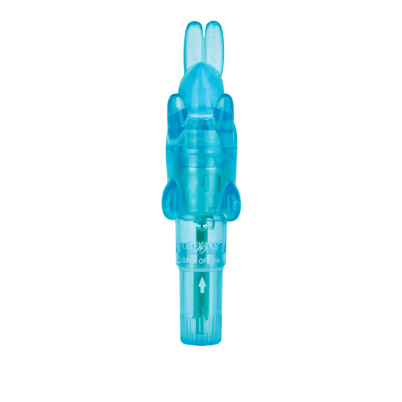 Shane's World series Pocket Party Blue Vibrator from California Exotic Novelties. This sweet, flirty, and feminine little Blue massager is discreet as can be and measures in at just 3.75 inches long. It is the perfect travel companion and slips unnoticed into your purse for on the go fun or can be tucked away in a drawer. In addition to all this convenience, it also happens to be incredibly powerful and one twist of the base will bring you totalvibrating bliss. The adorable bunny portion of the massager is a soft, pliable sleeve. Enjoy the flickering blue bunny ears as they tease and tantalize you to an awesome orgasm. Or slip off the bunny sleeve and enjoy the three bead style stimulators instead. Soft or intense, naughty or nice: it is all up to you with the Shane’s World Pocket Party. It is made of body safe materials, so you can play, tease, and please with abandon. You will love the soft and stretchy bunny sleeve against all of your most sensitive areas. And, better yet, the entire massager is completely waterproof. So, you can pamper yourself with pleasure both in and out of the water. Just slip in 1 AA battery, twist the base, and you will be ready to enjoy the incredibly powerful sensations of the Shane’s World Pocket Party. Shane's World series Pocket Party Blue features a rocket style massager and a bunny sleeve. Powerful, compact massager. Soft and stretchy removable, flickering bunny sleeve to tease and tantalize. Waterproof for play in and out of the water. Safe and pure for body and pleasure made using phthalate free materials ABS Plastic massager, Thermoplastic Elastomers TPE sleeve. 3.75 inches by 1 inch massager. 3.5 inches by 1.25 inches sleeve. Requires 1 AA battery, not included. Bulk weight 2.2 ounces.